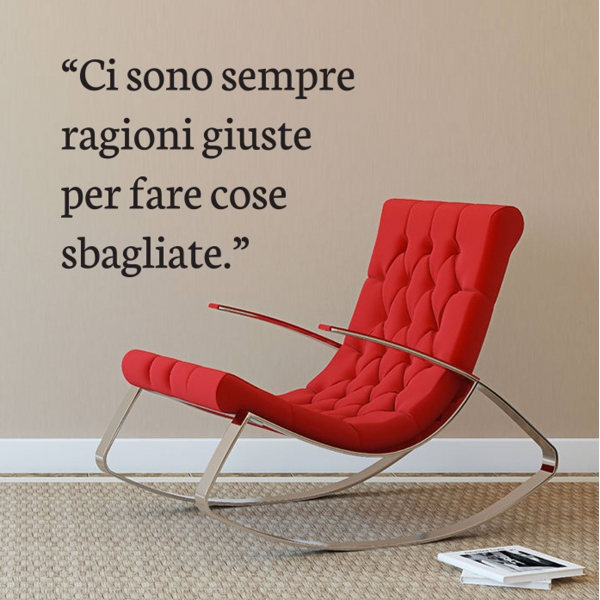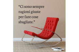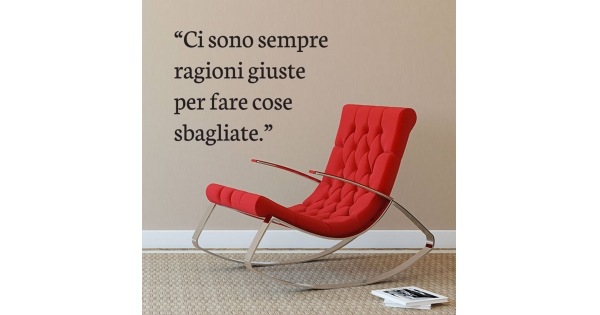 PRODOTTI DI ALTA QUALITÀ Scegli l’adesivo “Ci sono sempre ragioni giuste” Di-arte: facilissimo da applicare e così sottile da poter essere rimosso in modo semplice, senza lasciar alcun segno sulle superfici.I nostri adesivi, 100% Made in Italy, presentano un’elevata qualità, in quanto prodotti con metodi che prevedono un’alta percentuale di lavoro a mano e materiali ricercati e sempre all’avanguardia.Gli adesivi Di-arte sono ottimi per ogni parete della tua casa o del tuo ufficio: semplici, ma allo stesso tempo di grande effetto per dare un tocco unico alle tue stanze. SCEGLI LA SOLUZIONE PIÙ ADATTA A TE Applica il tuo adesivo dove preferisci, servendoti di una semplice card o carta di credito, utile per farlo attaccare meglio alla superficie, dopo aver scelto dimensioni e colore che più fanno per te. Le nostre dimensioni sono sempre associate al foglio di consegna e indicate come larghezza x altezza. Vorresti comprare l’adesivo murale “Ci sono sempre ragioni giuste” ma necessiti di una dimensione o di un colore diverso? Nessun problema, contattaci e cercheremo la soluzione più adatta alle tue esigenze. INDICAZIONI PER L’APPLICAZIONE Grazie all’application tape, pellicola appiccicosa trasparente che viene posta al di sopra dell’adesivo, è possibile, una volta rimossa la carta di supporto, trasferire integralmente, in un’unica soluzione, lo sticker direttamente sul muro.Servendosi di una spatola o anche di una qualsiasi card o carta di credito, dopo aver compiuto un movimento dal centro verso l’esterno, necessario per farlo aderire meglio, è sufficiente rimuovere con cautela la pellicola, sollevandone un bordo e tirando verso l’esterno, e l’adesivo sarà pronto. Hai ancora dubbi sull’applicazione? Segui le istruzioni che ti verranno consegnate con il nostro adesivo e cambia look alla tua casa! I nostri adesivi si adattano perfettamente alle superfici lisce: assicurati, dunque, prima di procedere all’applicazione che essa sia pulita e priva di tracce di polvere.