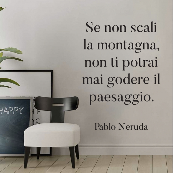 PRODOTTI DI ALTA QUALITÀ Scegli l’adesivo “Se non scali la montagna” Di-arte: facilissimo da applicare e così sottile da poter essere rimosso in modo semplice, senza lasciar alcun segno sulle superfici.I nostri adesivi, 100% Made in Italy, presentano un’elevata qualità, in quanto prodotti con metodi che prevedono un’alta percentuale di lavoro a mano e materiali ricercati e sempre all’avanguardia.Gli adesivi Di-arte sono ottimi per ogni parete della tua casa o del tuo ufficio: semplici, ma allo stesso tempo di grande effetto per dare un tocco unico alle tue stanze. SCEGLI LA SOLUZIONE PIÙ ADATTA A TE Applica il tuo adesivo dove preferisci, servendoti di una semplice card o carta di credito, utile per farlo attaccare meglio alla superficie, dopo aver scelto dimensioni e colore che più fanno per te. Le nostre dimensioni sono sempre associate al foglio di consegna e indicate come larghezza x altezza. Vorresti comprare l’adesivo murale “Se non scali la montagna” ma necessiti di una dimensione o di un colore diverso? Nessun problema, contattaci e cercheremo la soluzione più adatta alle tue esigenze. INDICAZIONI PER L’APPLICAZIONE Grazie all’application tape, pellicola appiccicosa trasparente che viene posta al di sopra dell’adesivo, è possibile, una volta rimossa la carta di supporto, trasferire integralmente, in un’unica soluzione, lo sticker direttamente sul muro.Servendosi di una spatola o anche di una qualsiasi card o carta di credito, dopo aver compiuto un movimento dal centro verso l’esterno, necessario per farlo aderire meglio, è sufficiente rimuovere con cautela la pellicola, sollevandone un bordo e tirando verso l’esterno, e l’adesivo sarà pronto. Hai ancora dubbi sull’applicazione? Segui le istruzioni che ti verranno consegnate con il nostro adesivo e cambia look alla tua casa! I nostri adesivi si adattano perfettamente alle superfici lisce: assicurati, dunque, prima di procedere all’applicazione che essa sia pulita e priva di tracce di polvere.