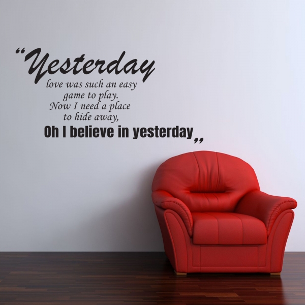 "Yesterday love was such an easy game to play. Now I need a place to hide away, oh I believe in yesterday"