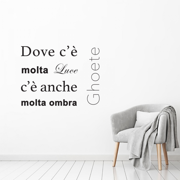 PRODOTTI DI ALTA QUALITÀ Scegli l’adesivo “Dove c'è molta luce c'è anche molta ombra” Di-arte: semplicissimo da applicare ed estremamente sottile in modo da poter essere rimosso facilmente, senza intaccare le pareti in alcun modo.I nostri adesivi, 100% Made in Italy, sono di qualità eccelsa, essendo realizzati attraverso processi con un’alta percentuale di lavoro a mano e con materiali pregiati e sempre all’avanguardia.Gli adesivi Di-arte sono ideali per ogni ambiente del tuo ufficio o della tua abitazione: grazie alla loro semplicità, conferiscono un tocco unico alle tue superfici, lasciando tutti a bocca aperta.