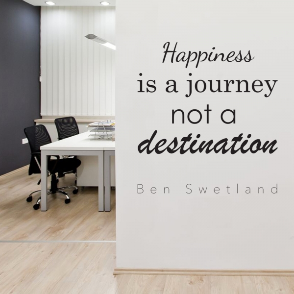 Una frase per ricordare che la felicità è un viaggio, non una destinazione: perfetta per la parete di qualsiasi locale di chi ama l'idea di partire...
