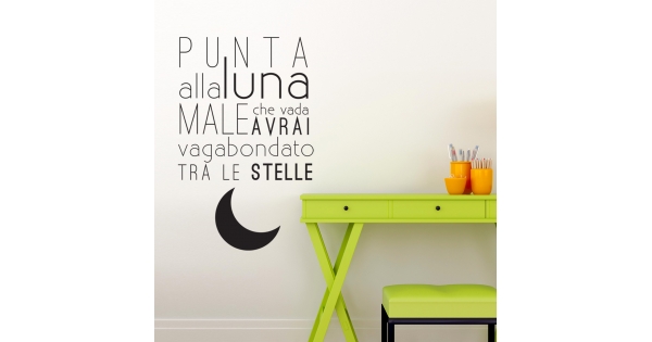 PRODOTTI DI ALTA QUALITÀ Scegli l’adesivo “Punta alla luna” Di-arte: semplicissimo da applicare ed estremamente sottile in modo da poter essere rimosso facilmente, senza intaccare le pareti in alcun modo.I nostri adesivi, 100% Made in Italy, sono di qualità eccelsa, essendo realizzati attraverso processi con un’alta percentuale di lavoro a mano e con materiali pregiati e sempre all’avanguardia.Gli adesivi Di-arte sono ideali per ogni ambiente del tuo ufficio o della tua abitazione: grazie alla loro semplicità, conferiscono un tocco unico alle tue superfici, lasciando tutti a bocca aperta.