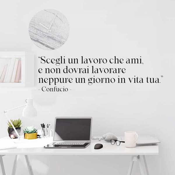 PRODOTTI DI ALTA QUALITÀ Scegli l’adesivo “Scegli un lavoro che ami” Di-arte: è facilissimo da applicare e talmente sottile da poter essere staccato in modo semplice, senza rovinare in alcun modo le superfici.I nostri adesivi, 100% Made in Italy, sono di altissima qualità, realizzati con tecniche con un’alta percentuale di lavoro a mano e con materiali ricercati e sempre all’avanguardia.Gli adesivi Di-arte sono perfetti per qualsiasi stanza della tua casa o del tuo ufficio: semplici, ma allo stesso tempo di grande impatto per donare un tocco unico alle tue pareti.