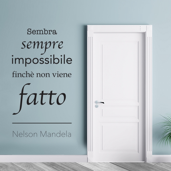 PRODOTTI DI ALTA QUALITÀ Scegli l’adesivo “Sembra sempre impossibile” Di-arte: semplicissimo da applicare ed estremamente sottile in modo da poter essere rimosso facilmente, senza intaccare le pareti in alcun modo.I nostri adesivi, 100% Made in Italy, sono di qualità eccelsa, essendo realizzati attraverso processi con un’alta percentuale di lavoro a mano e con materiali pregiati e sempre all’avanguardia.Gli adesivi Di-arte sono ideali per ogni ambiente del tuo ufficio o della tua abitazione: grazie alla loro semplicità, conferiscono un tocco unico alle tue superfici, lasciando tutti a bocca aperta.