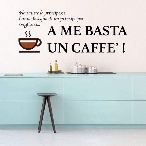 PRODOTTI DI ALTA QUALITÀ Scegli l’adesivo “A me basta un caffè...” Di-arte: è facilissimo da applicare e talmente sottile da poter essere staccato in modo semplice, senza rovinare in alcun modo le superfici.I nostri adesivi, 100% Made in Italy, sono di altissima qualità, realizzati con tecniche con un’alta percentuale di lavoro a mano e con materiali ricercati e sempre all’avanguardia.Gli adesivi Di-arte sono perfetti per qualsiasi stanza della tua casa o del tuo ufficio: semplici, ma allo stesso tempo di grande impatto per donare un tocco unico alle tue pareti.