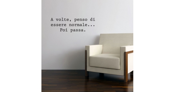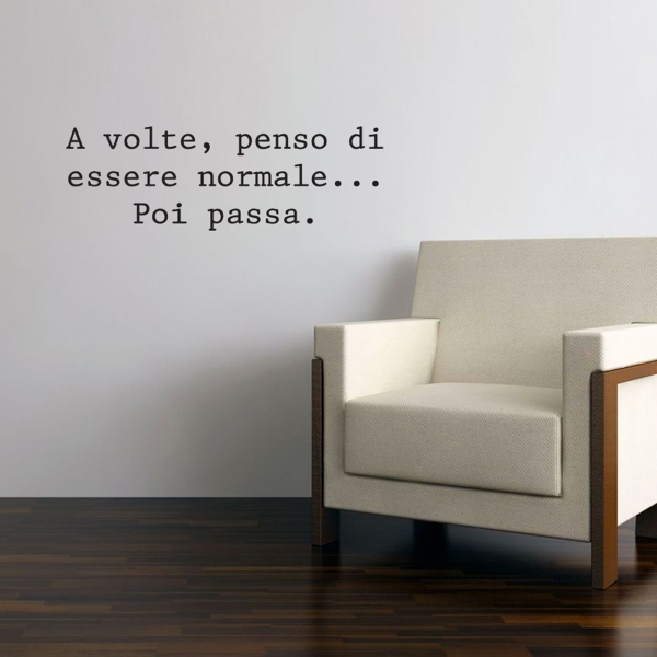 PRODOTTI DI ALTA QUALITÀ Scegli l’adesivo “A volte penso di essere normale poi passa” Di-arte: facilissimo da applicare e così sottile da poter essere rimosso in modo semplice, senza lasciar alcun segno sulle superfici.I nostri adesivi, 100% Made in Italy, presentano un’elevata qualità, in quanto prodotti con metodi che prevedono un’alta percentuale di lavoro a mano e materiali ricercati e sempre all’avanguardia.Gli adesivi Di-arte sono ottimi per ogni parete della tua casa o del tuo ufficio: semplici, ma allo stesso tempo di grande effetto per dare un tocco unico alle tue stanze. SCEGLI LA SOLUZIONE PIÙ ADATTA A TE Applica il tuo adesivo dove preferisci, servendoti di una semplice card o carta di credito, utile per farlo attaccare meglio alla superficie, dopo aver scelto dimensioni e colore che più fanno per te. Le nostre dimensioni sono sempre associate al foglio di consegna e indicate come larghezza x altezza. Vorresti comprare l’adesivo murale “A volte penso di essere normale poi passa” ma necessiti di una dimensione o di un colore diverso? Nessun problema, contattaci e cercheremo la soluzione più adatta alle tue esigenze. INDICAZIONI PER L’APPLICAZIONE Grazie all’application tape, pellicola appiccicosa trasparente che viene posta al di sopra dell’adesivo, è possibile, una volta rimossa la carta di supporto, trasferire integralmente, in un’unica soluzione, lo sticker direttamente sul muro.Servendosi di una spatola o anche di una qualsiasi card o carta di credito, dopo aver compiuto un movimento dal centro verso l’esterno, necessario per farlo aderire meglio, è sufficiente rimuovere con cautela la pellicola, sollevandone un bordo e tirando verso l’esterno, e l’adesivo sarà pronto. Hai ancora dubbi sull’applicazione? Segui le istruzioni che ti verranno consegnate con il nostro adesivo e cambia look alla tua casa! I nostri adesivi si adattano perfettamente alle superfici lisce: assicurati, dunque, prima di procedere all’applicazione che essa sia pulita e priva di tracce di polvere.