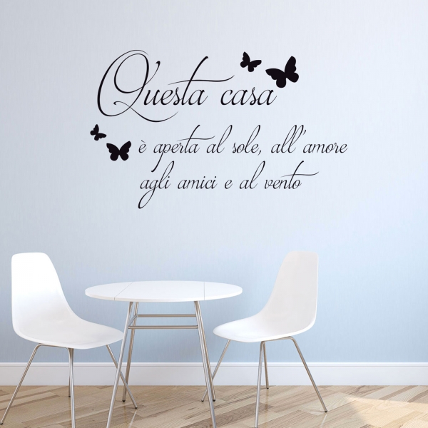 PRODOTTI DI ALTA QUALITÀ Scegli l’adesivo “Casa è amore” Di-arte: facilissimo da applicare e così sottile da poter essere rimosso in modo semplice, senza lasciar alcun segno sulle superfici.I nostri adesivi, 100% Made in Italy, presentano un’elevata qualità, in quanto prodotti con metodi che prevedono un’alta percentuale di lavoro a mano e materiali ricercati e sempre all’avanguardia.Gli adesivi Di-arte sono ottimi per ogni parete della tua casa o del tuo ufficio: semplici, ma allo stesso tempo di grande effetto per dare un tocco unico alle tue stanze.