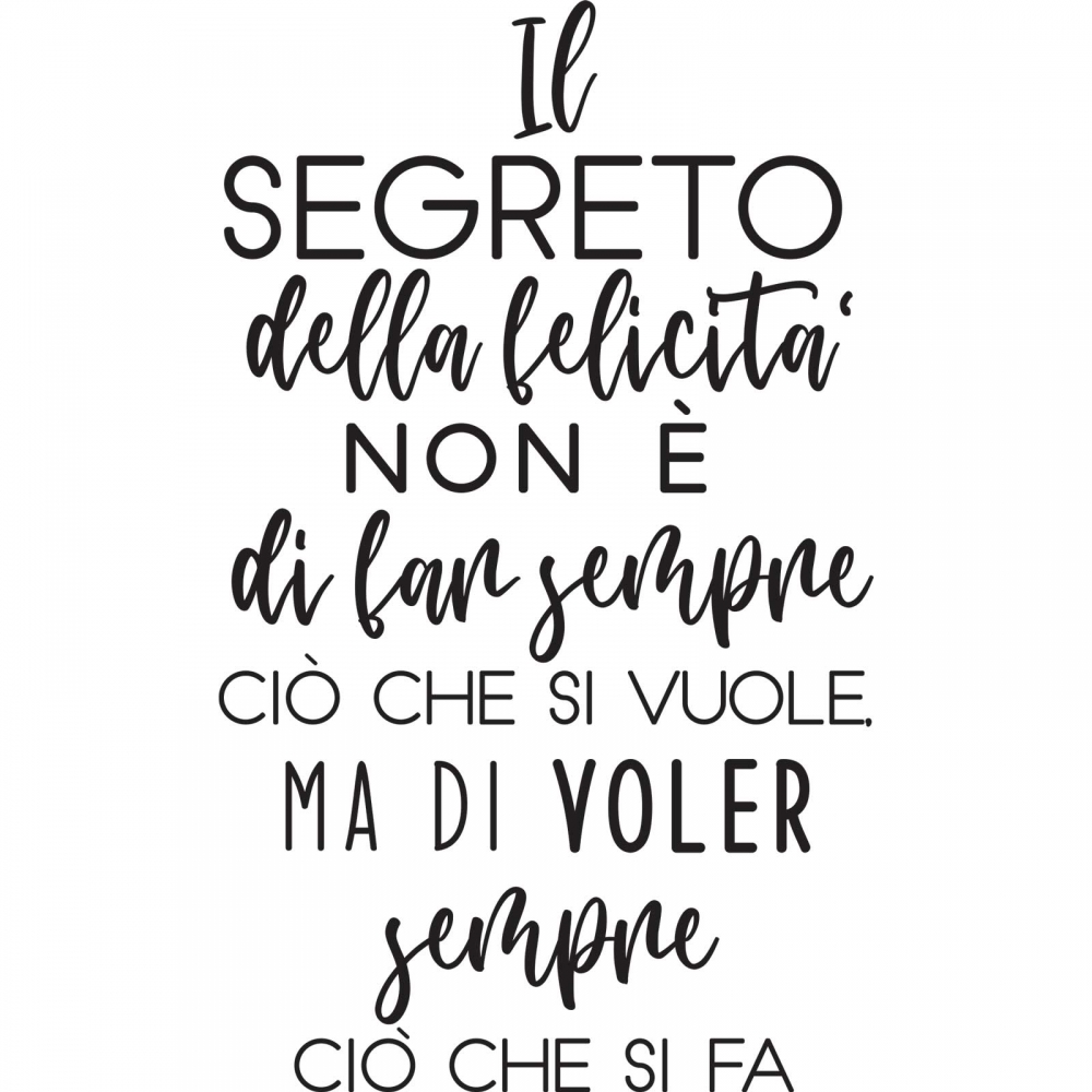 PRODOTTI DI ALTA QUALITÀ Scegli l’adesivo “Il segreto della felicità ” Di-arte: semplicissimo da applicare ed estremamente sottile in modo da poter essere rimosso facilmente, senza intaccare le pareti in alcun modo.I nostri adesivi, 100% Made in Italy, sono di qualità eccelsa, essendo realizzati attraverso processi con un’alta percentuale di lavoro a mano e con materiali pregiati e sempre all’avanguardia.Gli adesivi Di-arte sono ideali per ogni ambiente del tuo ufficio o della tua abitazione: grazie alla loro semplicità, conferiscono un tocco unico alle tue superfici, lasciando tutti a bocca aperta.