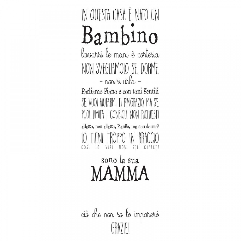 PRODOTTI DI ALTA QUALITÀ Scegli l’adesivo “In questa casa è nato un bambino” Di-arte: facilissimo da applicare e così sottile da poter essere rimosso in modo semplice, senza lasciar alcun segno sulle superfici.I nostri adesivi, 100% Made in Italy, presentano un’elevata qualità, in quanto prodotti con metodi che prevedono un’alta percentuale di lavoro a mano e materiali ricercati e sempre all’avanguardia.Gli adesivi Di-arte sono ottimi per ogni parete della tua casa o del tuo ufficio: semplici, ma allo stesso tempo di grande effetto per dare un tocco unico alle tue stanze.