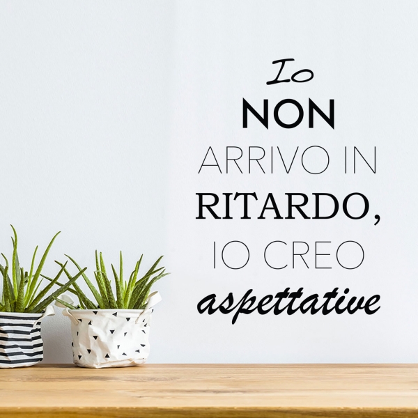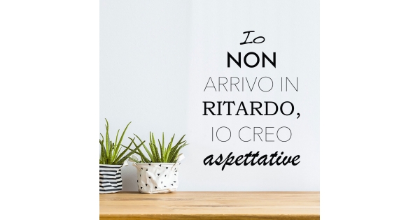 PRODOTTI DI ALTA QUALITÀ Scegli l’adesivo “Io non arrivo in ritardo” Di-arte: semplicissimo da applicare e così sottile che si stacca banalmente, lasciando le superfici come nuove.I nostri adesivi, 100% Made in Italy, presentano un’altissima qualità, poiché sono realizzati attraverso tecniche basate su un’alta percentuale di lavoro a mano e con materiali ricercati e sempre all’avanguardia.Gli adesivi Di-arte sono adatti a qualsiasi zona della tua casa o del tuo ufficio: la loro semplicità garantisce un tocco unico nonché di grande impatto alle tue pareti.