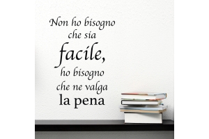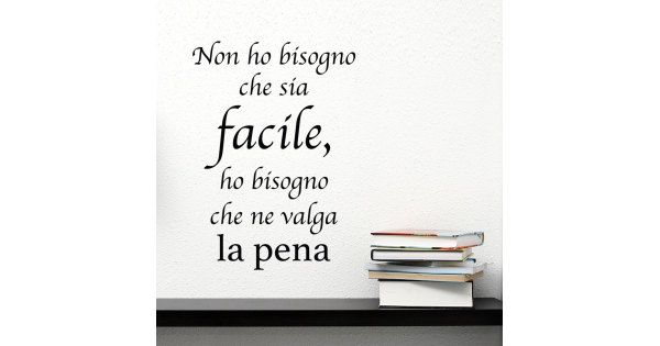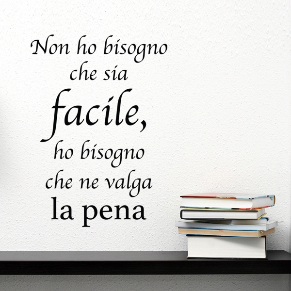 PRODOTTI DI ALTA QUALITÀ Scegli l’adesivo “Non ho bisogno che sia facile” Di-arte: facilissimo da applicare e così sottile da poter essere rimosso in modo semplice, senza lasciar alcun segno sulle superfici.I nostri adesivi, 100% Made in Italy, presentano un’elevata qualità, in quanto prodotti con metodi che prevedono un’alta percentuale di lavoro a mano e materiali ricercati e sempre all’avanguardia.Gli adesivi Di-arte sono ottimi per ogni parete della tua casa o del tuo ufficio: semplici, ma allo stesso tempo di grande effetto per dare un tocco unico alle tue stanze.