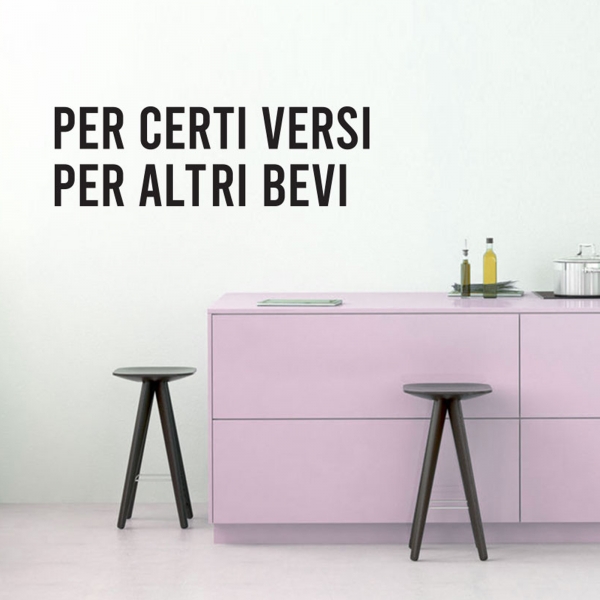 PRODOTTI DI ALTA QUALITÀ Scegli l’adesivo “Per certi versi per altri bevi” Di-arte: facilissimo da applicare e così sottile da poter essere rimosso in modo semplice, senza lasciar alcun segno sulle superfici.I nostri adesivi, 100% Made in Italy, presentano un’elevata qualità, in quanto prodotti con metodi che prevedono un’alta percentuale di lavoro a mano e materiali ricercati e sempre all’avanguardia.Gli adesivi Di-arte sono ottimi per ogni parete della tua casa o del tuo ufficio: semplici, ma allo stesso tempo di grande effetto per dare un tocco unico alle tue stanze. SCEGLI LA SOLUZIONE PIÙ ADATTA A TE Applica il tuo adesivo dove preferisci, servendoti di una semplice card o carta di credito, utile per farlo attaccare meglio alla superficie, dopo aver scelto dimensioni e colore che più fanno per te. Le nostre dimensioni sono sempre associate al foglio di consegna e indicate come larghezza x altezza. Vorresti comprare l’adesivo murale “Per certi versi per altri bevi” ma necessiti di una dimensione o di un colore diverso? Nessun problema, contattaci e cercheremo la soluzione più adatta alle tue esigenze. INDICAZIONI PER L’APPLICAZIONE Grazie all’application tape, pellicola appiccicosa trasparente che viene posta al di sopra dell’adesivo, è possibile, una volta rimossa la carta di supporto, trasferire integralmente, in un’unica soluzione, lo sticker direttamente sul muro.Servendosi di una spatola o anche di una qualsiasi card o carta di credito, dopo aver compiuto un movimento dal centro verso l’esterno, necessario per farlo aderire meglio, è sufficiente rimuovere con cautela la pellicola, sollevandone un bordo e tirando verso l’esterno, e l’adesivo sarà pronto. Hai ancora dubbi sull’applicazione? Segui le istruzioni che ti verranno consegnate con il nostro adesivo e cambia look alla tua casa! I nostri adesivi si adattano perfettamente alle superfici lisce: assicurati, dunque, prima di procedere all’applicazione che essa sia pulita e priva di tracce di polvere.