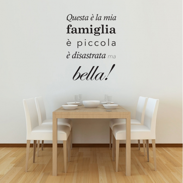 PRODOTTI DI ALTA QUALITÀ Scegli l’adesivo “Questa è la mia famiglia” Di-arte: è facilissimo da applicare e talmente sottile da poter essere staccato in modo semplice, senza rovinare in alcun modo le superfici.I nostri adesivi, 100% Made in Italy, sono di altissima qualità, realizzati con tecniche con un’alta percentuale di lavoro a mano e con materiali ricercati e sempre all’avanguardia.Gli adesivi Di-arte sono perfetti per qualsiasi stanza della tua casa o del tuo ufficio: semplici, ma allo stesso tempo di grande impatto per donare un tocco unico alle tue pareti.