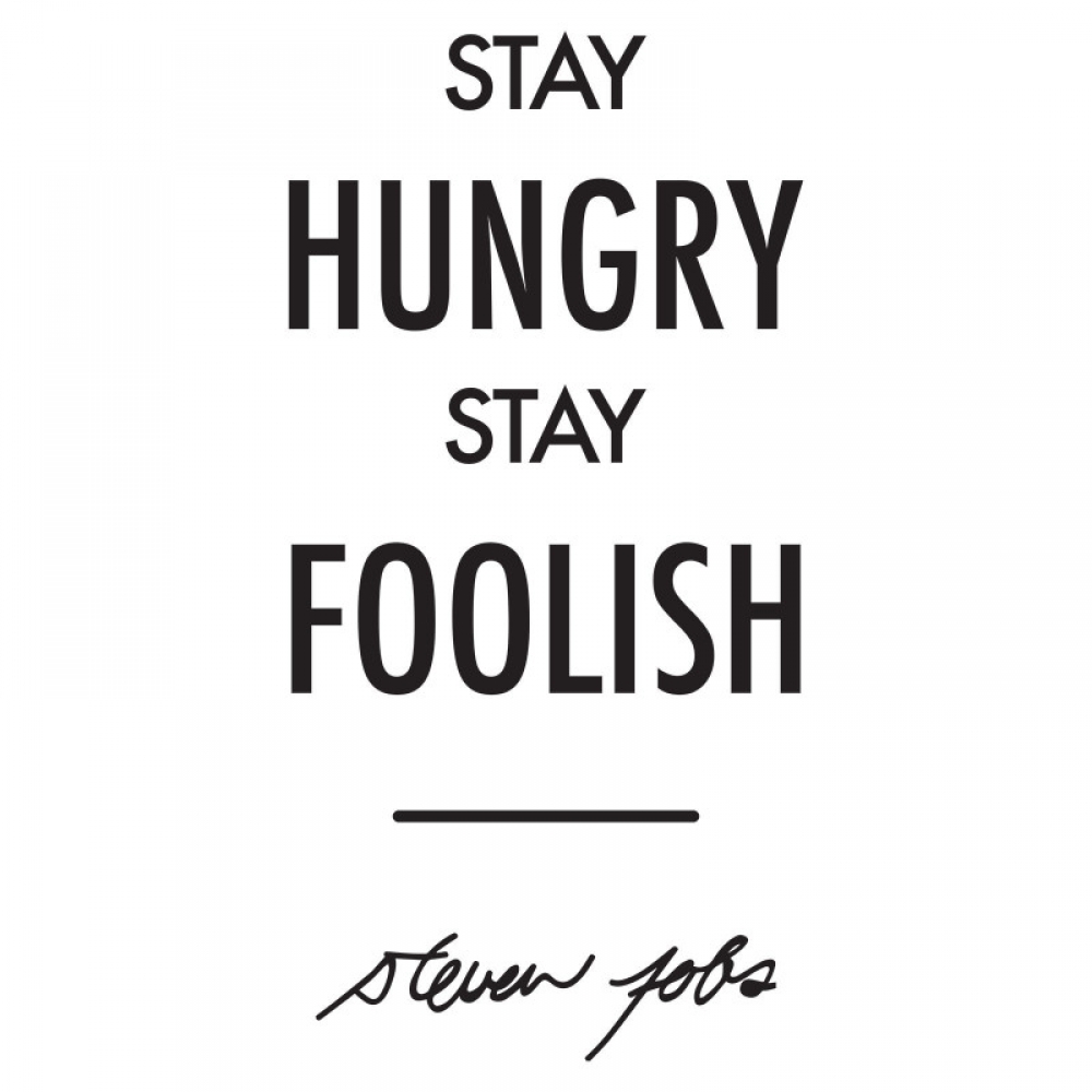 La famosa frase di Steve Jobs "siate affamati, siate folli" è il promemoria per ricordare di non accontentarsi ma pensare l'impossibile. Sarà perfetta ispirazione nella parete del vostro ufficio.