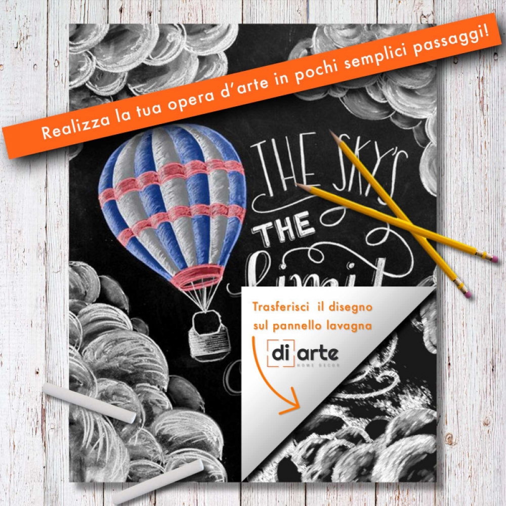 Oltre alla possibilità di selezionare diverse dimensioni in base ai tuoi spazi e alle tue esigenze, il pannello decorativo Chalkboard Art “Sky” è pensato per chi desidera esprimere la propria creatività in modo semplice e intuitivo.