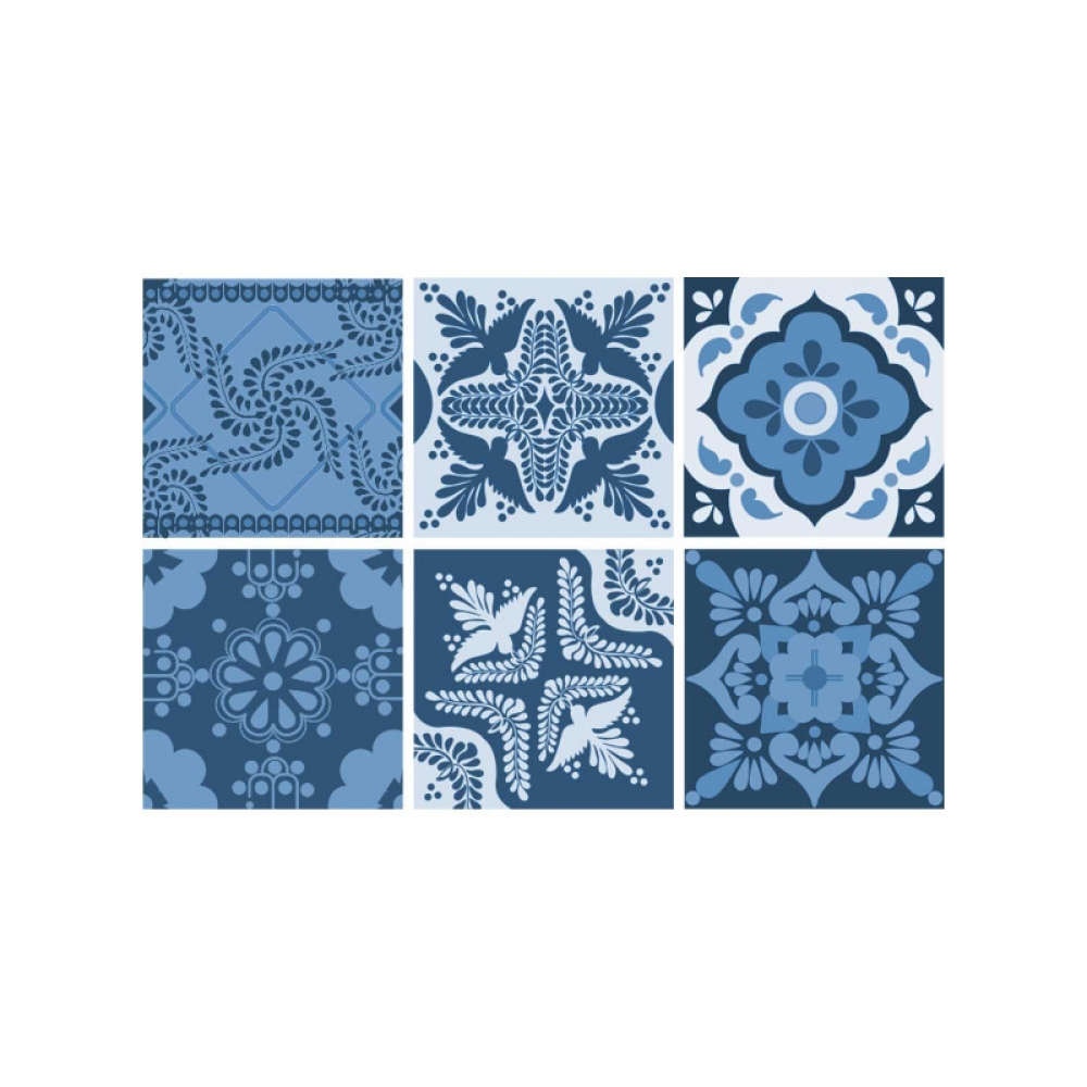 Decorazione adesiva per piastrelle in vari formati.