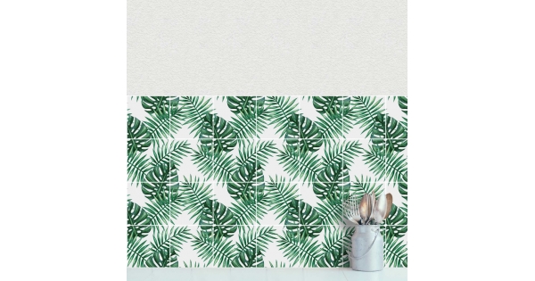 Decorazione adesiva per piastrelle in vari formati.