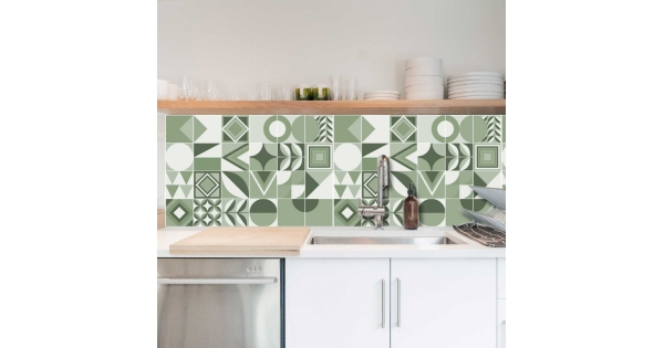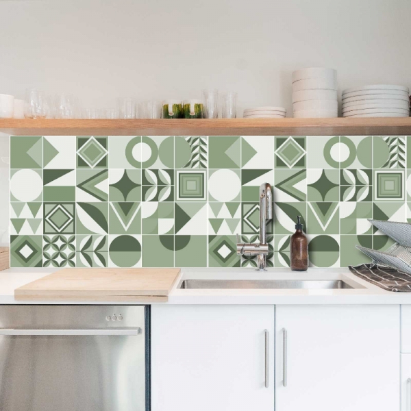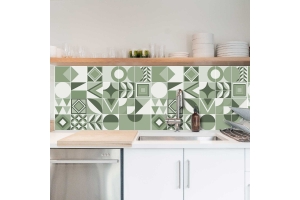 Decorazione adesiva per piastrelle in vari formati.
