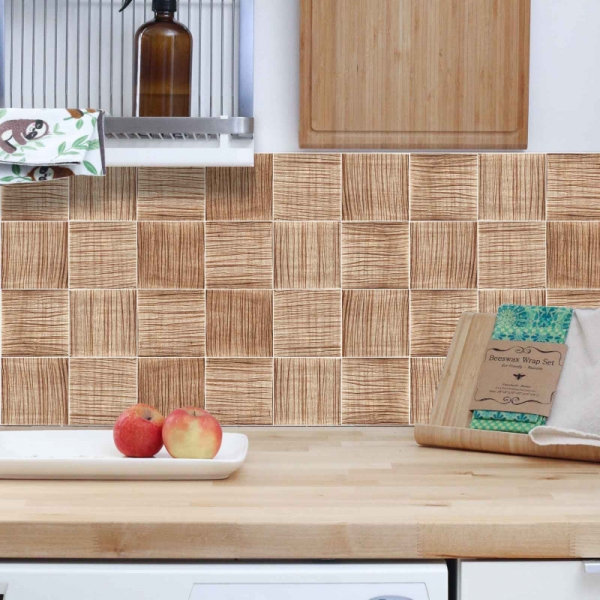 Decorazione adesiva per piastrelle in vari formati.