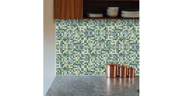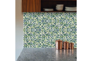 Decorazione adesiva per piastrelle in vari formati.